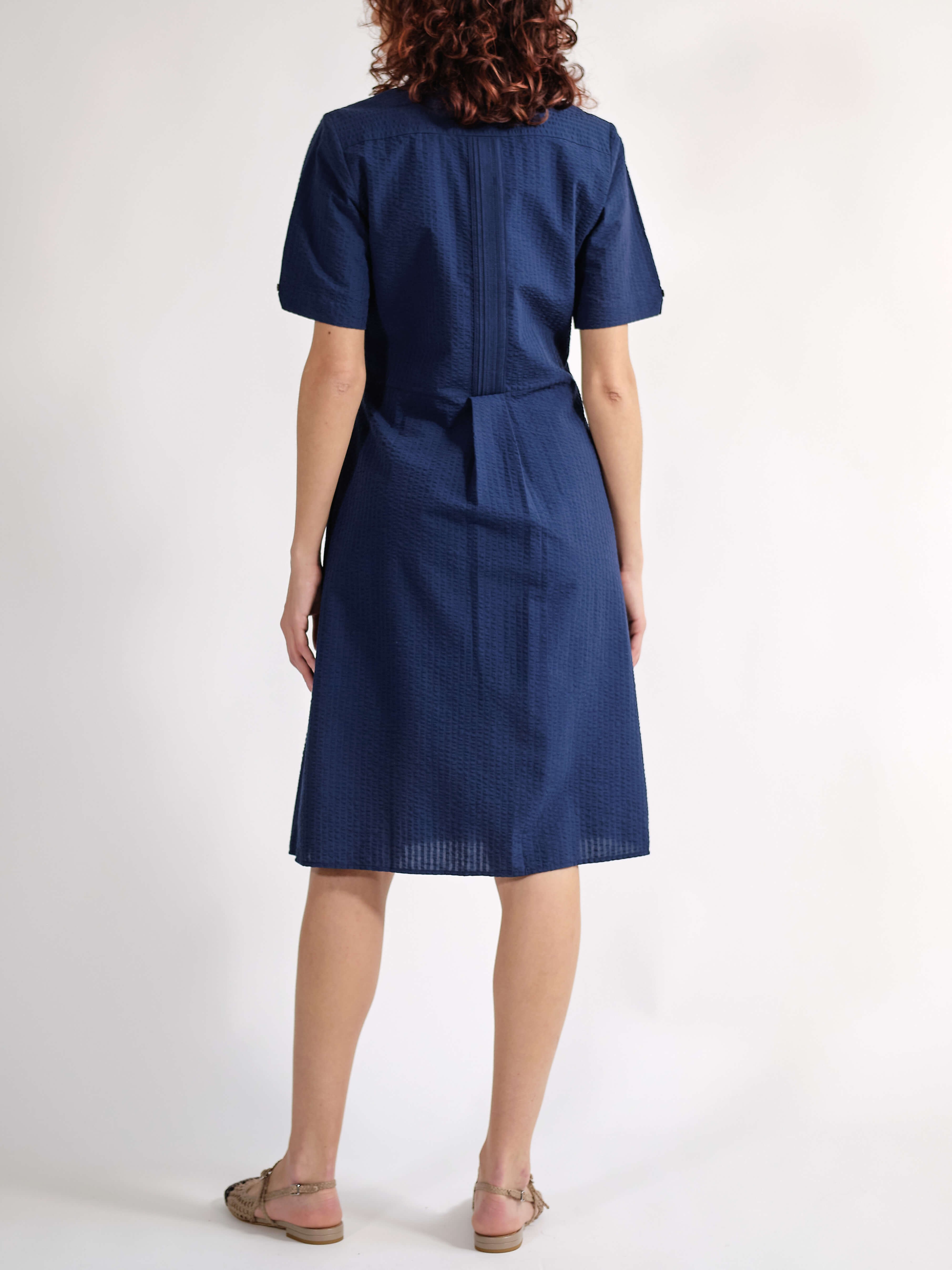 Das Parque-Kleid aus 100 % Seasucker-Baumwolle ist ein Damenkleid, das auf extreme Schlichtheit und Benutzerfreundlichkeit setzt. Ein schlichtes Kleid mit bequemen Seitentaschen, das Eleganz und Frische für viele Gelegenheiten bietet. Echte Perlmuttknöpfe. Farben: Weiß und Ultramarinblau. Normale Passform, 3 Größen: 36/38 – 40/42 – 42/44.